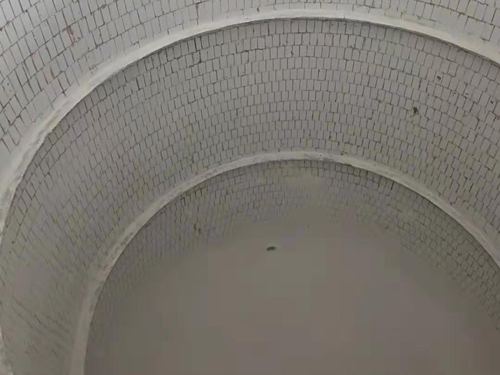 3、工業(yè)瓷耐酸磚,間縫寬度約8--10mm,間縫深度與磚厚相平為宜,以防泄露; 鋪貼完畢后應(yīng)用槽酸沖刷表面,以助于更加牢固。